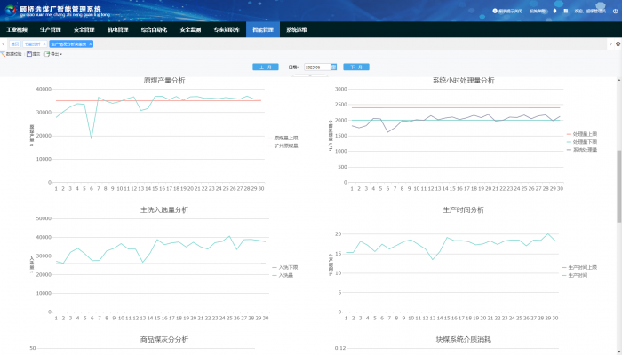 According to the construction goal and related construction content of the intelligent coal preparation plant in the “General Technical Specification for the Construction of Intelligent Coal Preparation Plant”, combined with the terms of the intelligent acceptance method of the coal preparation plant in the “Intelligent Coal Mine Acceptance Method (Trial)” and the safety production practice of Guqiao Coal Preparation Plant, the intelligent construction (intelligent management module ) of Guqiao Coal Preparation Plant is carried out. The intelligent management module of Guqiao Coal Preparation Plant is constructed on the comprehensive information system of the coal preparation branch, and the internal production, electromechanical, technical, energy saving, collaborative and other management functions of Guqiao Coal Preparation Plant are realized, and the expert knowledge base in accordance with various coal preparation algorithms, curve drawing methods, analysis and evaluation methods, electromechanical management, production management and process control is established.